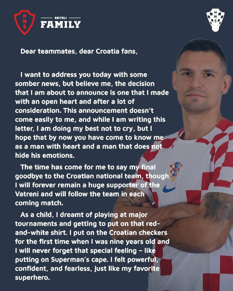 “Ha llegado ese día en que tengo que despedirme y decir adiós a la selección croata”, señala Lovren en su carta, escrita, según afirma, con lágrimas en los ojos.