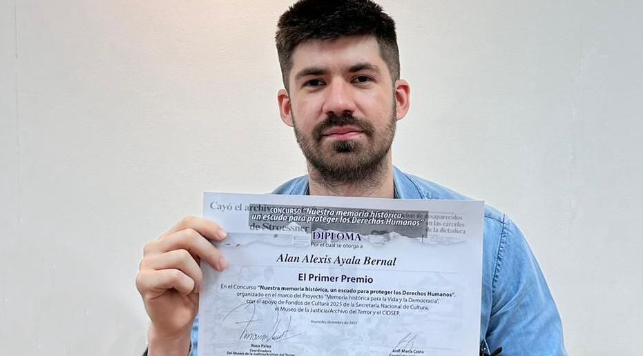 El periodista Alan Alexis Ayala, logró el primer puesto del concurso “Nuestra memoria histórica. Un escudo para proteger los derechos humanos”, el cual busca concienciar e impulsar el ejercicio de memoria acerca de los crímenes perpetrados durante la dictadura de Alfredo Stroessner en Paraguay.