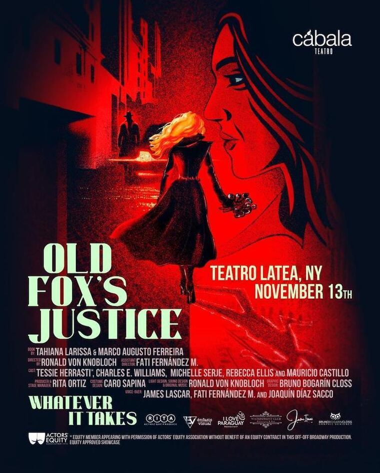 Old Fox’s Justice se presentó en el Teatro Latea, ubicado en el Clemente Soto Vélez Cultural & Educational Center de Manhattan, con tres funciones en total. La realización fue posible gracias al apoyo de I love Paraguay Restaurant, Waterfront club y el Consulado de Paraguay en Nueva York, entre otros.
