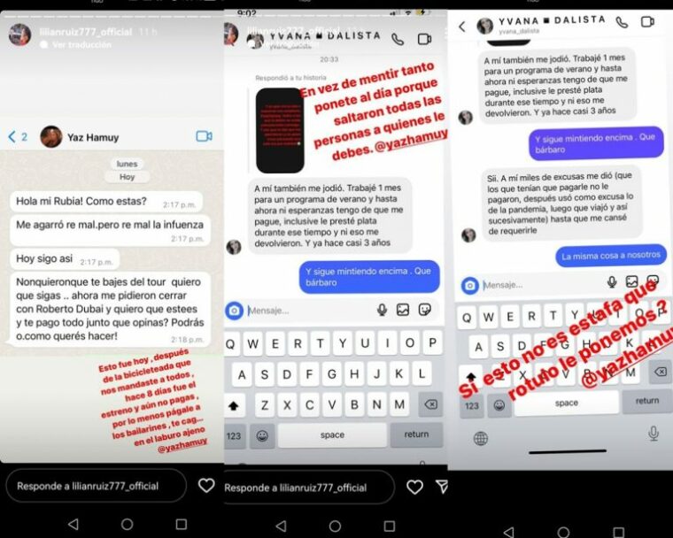 Desde su cuenta en Instagram, Ruíz arremetió contra Hamuy revelando capturas de mensajes entre ambas, además de otras personas que aseguran haber sido estafadas por le mujer.