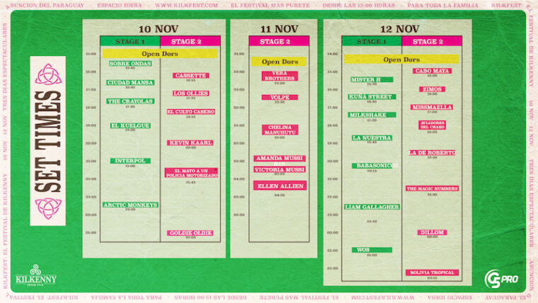 La edición 2022 del Kilk Fest calienta motores. El festival musical que se llevará a cabo el jueves 10 y el sábado 12 de noviembre se traslada al Jockey Club Paraguayo con gran variedad musical de la mano de artistas internacionales de la talla de Arctic Monkeys, Liam Gallagher, Interpol,y The Magic Numbers.