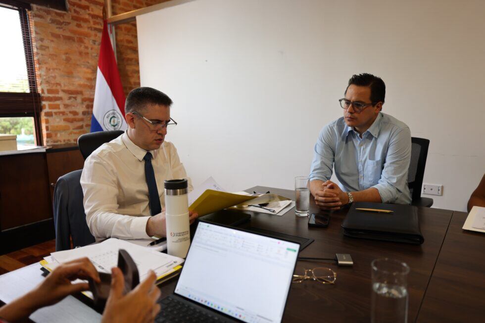 El ministro del MITIC, Gustavo Villate, mantuvo una reunión con una comitiva del Consejo Nacional de Educación Superior (CONES), encabezada por su actual titular, el viceministro de Educación Superior Federico Mora.