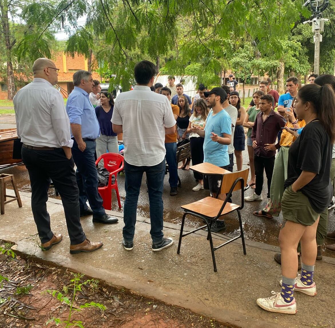 Este miércoles, el ministro de Educación, Luis Ramírez, acompañado de los viceministros Federico Mora y Oscar Lovera, se presentaron en el campus de la Universidad Nacional de Asunción (UNA) con el objetivo de reunirse con los universitarios manifestados en el lugar.