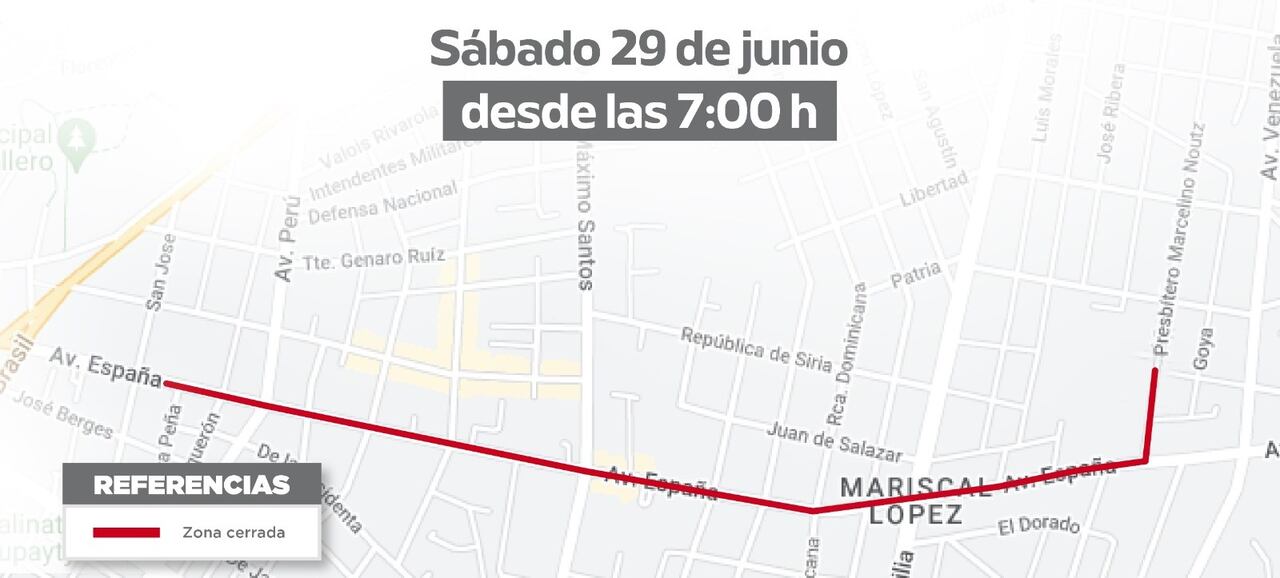 Desde la calle Rosa Peña hasta Presbítero Marcelino Noutz se procedió al cierre de la Avda. España, según comunicó la Dirección de Tránsito de Asunción.