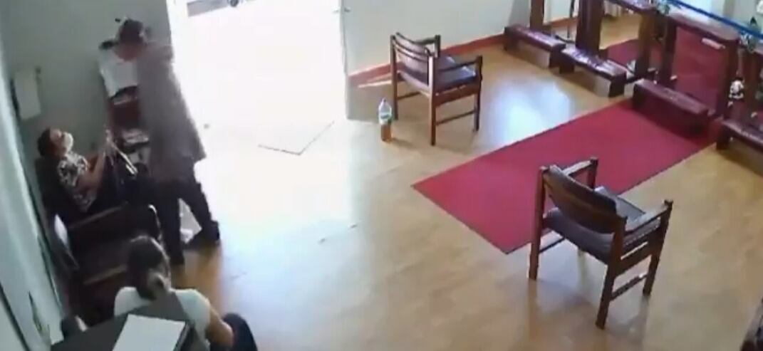 Al lugar llegó un delincuente con un estoque en mano y amenazó a una señora que estaba sentada rezando. Le mostró el arma blanca y le exigió que entregue sus pertenencias, de lo contrario, la atacaría.