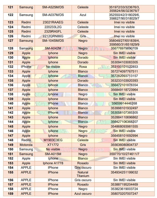 El Departamento de Crimen Organizado en Asunción publicó el listado de teléfonos robados por un peligroso grupo delictivo. La nómina incluye las características de los celulares y el número de IMEI, el cual permite identificar al dispositivo.