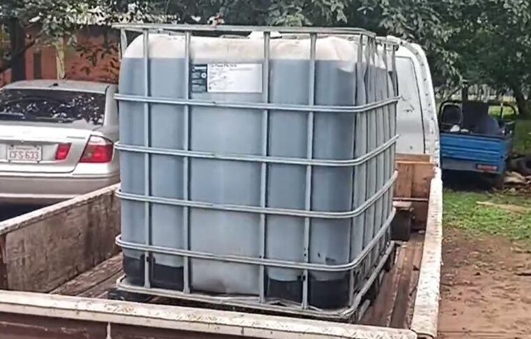 Según los datos recabados por la Policía, la intención de los empleados era volver a comercializar el aditivo para hormigón por un monto estimado de G. 8 millones, pese a que su valor real es mucho mayor.