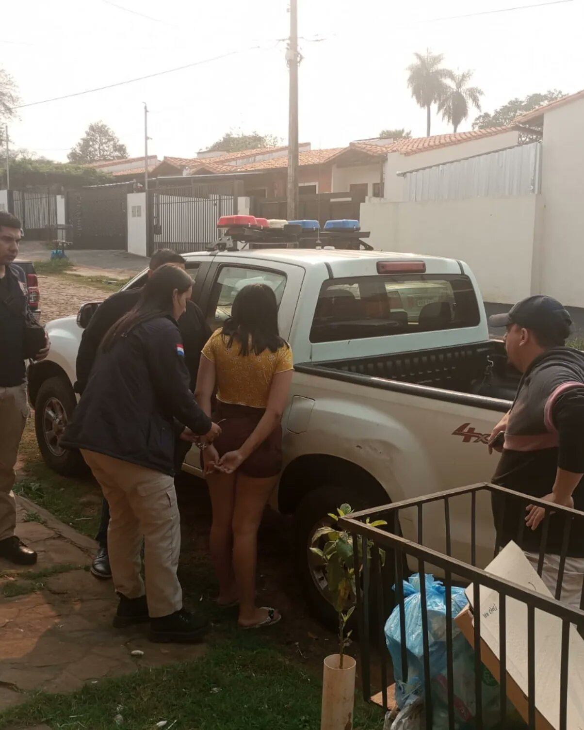Asimismo, fue aprehendida otra mujer quien se encontraba en la vía pública, observando el allanamiento, quien se comunicó telefónicamente con otra mujer mayor de edad, que poseía orden de detención por esta causa, refiriéndole que no llegara a la casa porque estaba siendo allanada, conversación escuchada por una suboficial interviniente