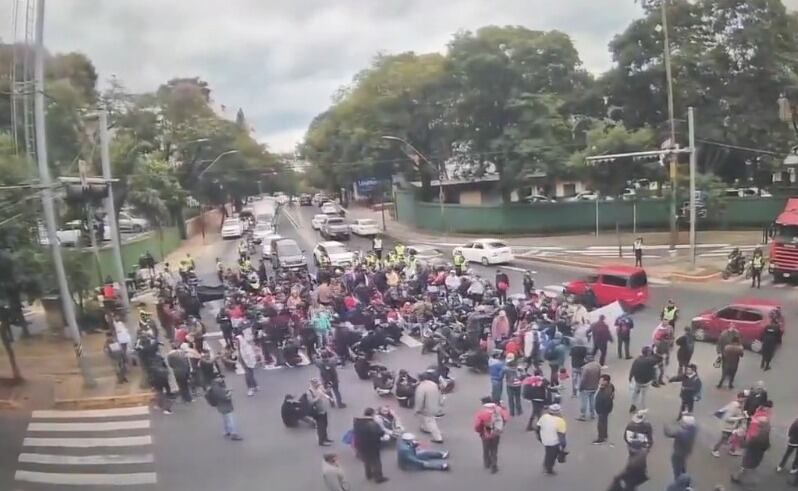La Policía Municipal de tránsito acompaña el cierre de la Avda. Mariscal López y General Santos, donde varios manifestantes pretenden avanzar hasta Mburuvicha Róga para presentar sus reclamos.