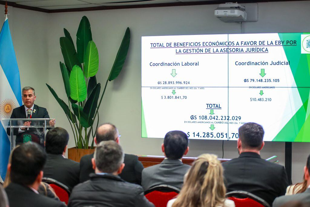 La Entidad Binacional Yacyretá evitó pagar G. 108.042.232.029 (USD 14.285.051) mediante gestiones favorables logradas en juicios laborales, demandas civiles y acuerdos alcanzados desde agosto del 2023 hasta agosto del 2024.