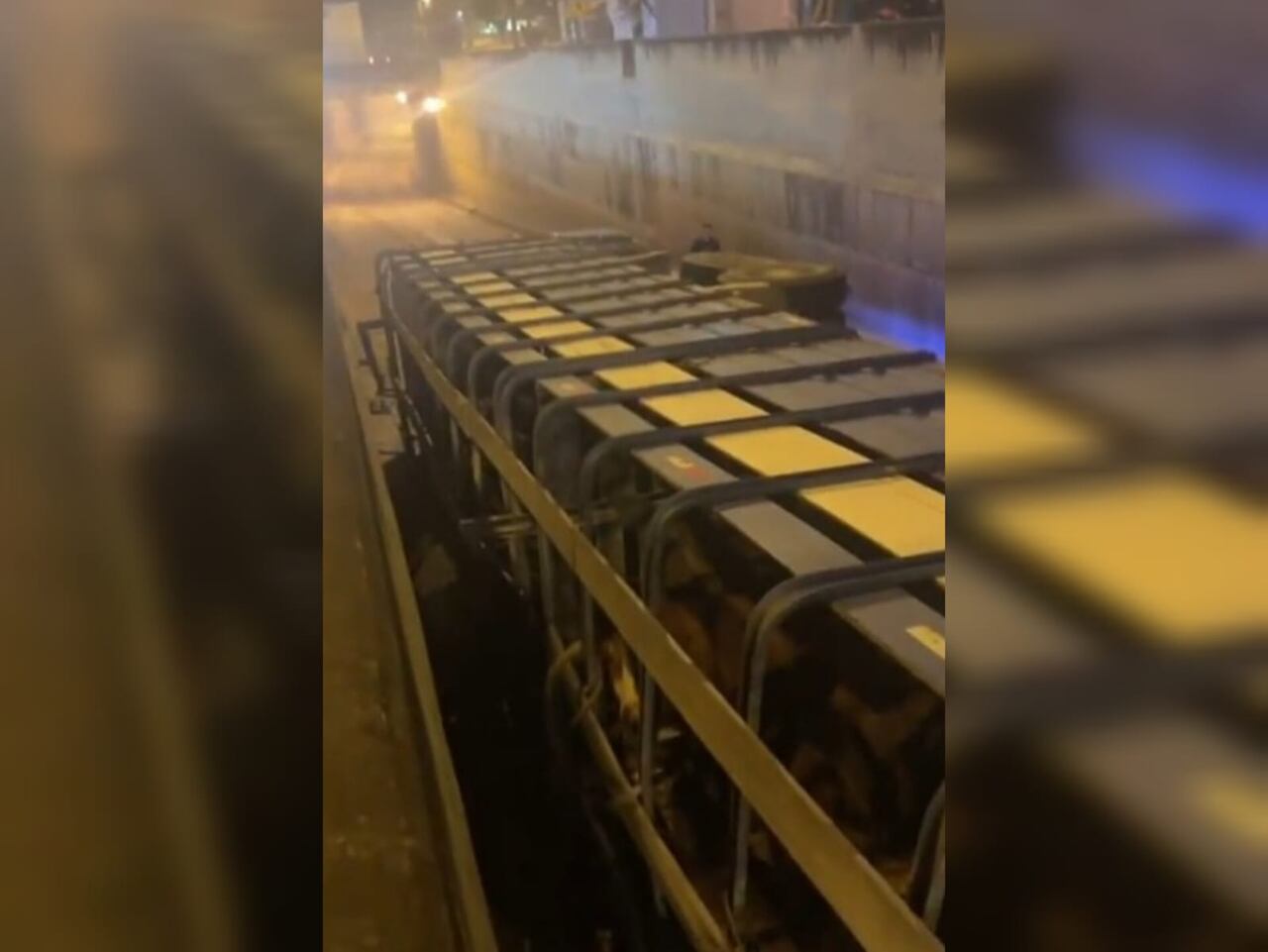 Un camión transganado volcó esta madrugada en el túnel Semidei. El chofer salió ileso, pero algunos animales resultaron heridos. No hubo otro vehículo involucrado en el percance.