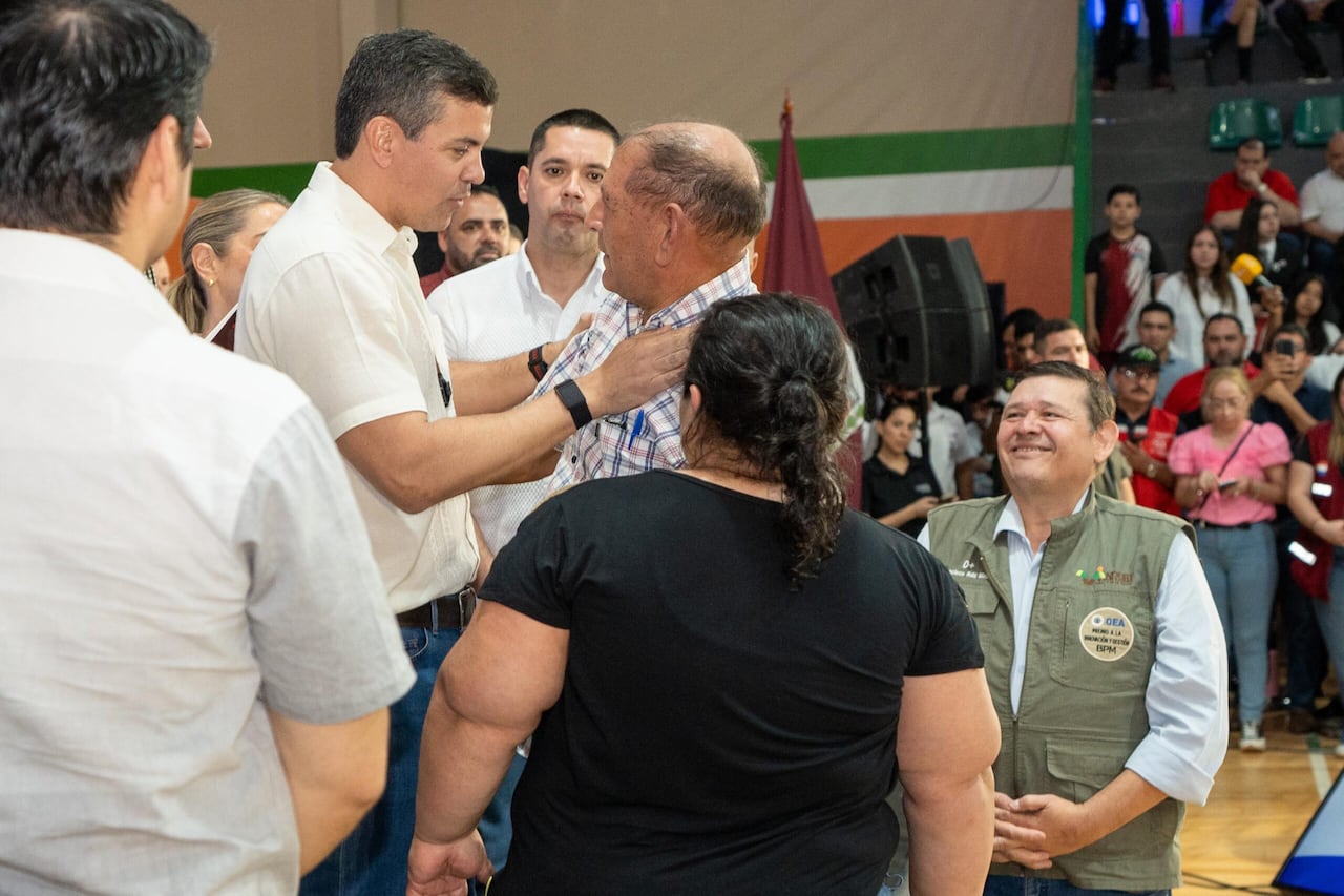 En un acto realizado en Curuguaty, departamento de Canindeyú, Santiago Peña recibió a las familias de la colonia San Óscar Romero, ex Marina Cue, y les entregó de manera simbólica los títulos de propiedad.