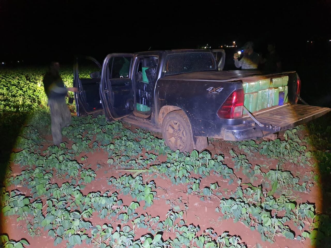 Los propietarios o encargados del transporte se internaron en una zona boscosa, abandonaron la camioneta y huyeron a pie. Dentro del vehículo encontraron aproximadamente 1.029 kilos con 85 gramos de supuesta marihuana prensada distribuida en 64 paquetes.