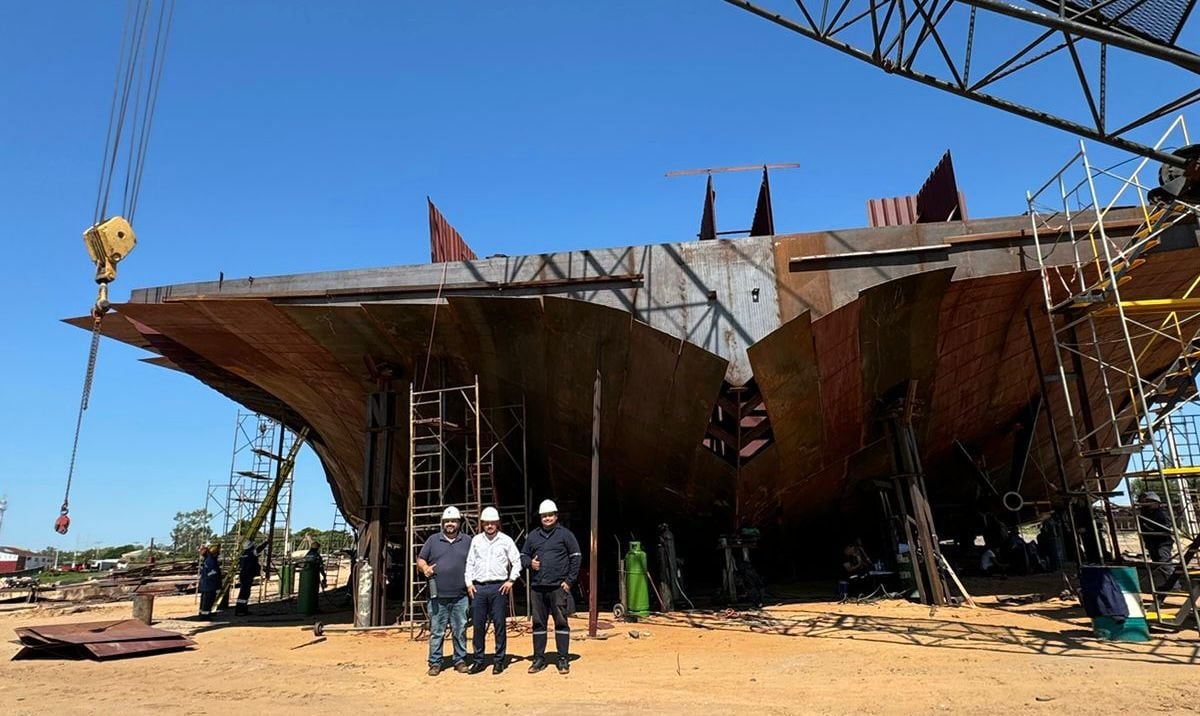 Patricio Ortega, director de la Marina Mercante, acompañado por su equipo técnico, verificó el avance en la construcción del Don Toyo, el buque más grande de la región.
