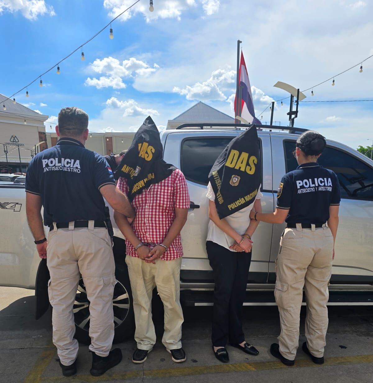 Los detenidos fueron identificados como Carlos Antonio Espínola Melgarejo de 38 años de edad, funcionario de la Cámara de Diputados, y Camila Alejandra Ayala Pereira de 28 años de edad. Ambos fueron capturados en flagrancia.