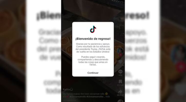 Luego de unas horas de haberse ejecutado la suspensión de sus servicios, finalmente este domingo se confirmó la reactivación de TikTok en Estados Unidos.