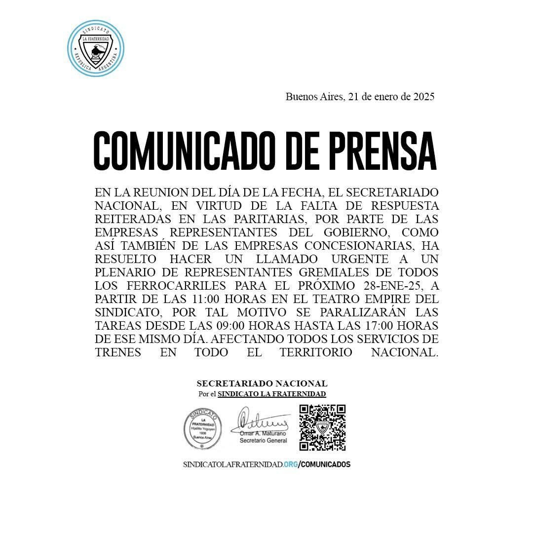 Dicha situación obedece al paro impulsado por el gremio de trabajadores de ferrocarriles en Argentina, según informó la periodista de Nación Media, Rocío Gómez.