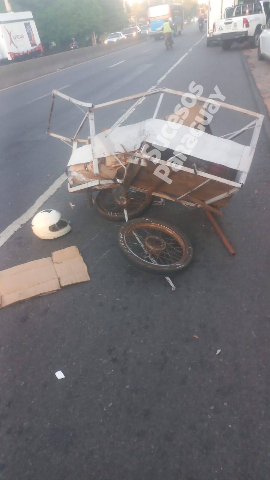 El incidente se produjo cuando el hombre, que estaba recolectando cartón en la vía, fue embestido por una motocicleta que luego huyó del lugar. Tras el impacto, un vehículo frenó repentinamente, pero un transporte público impactó en la parte trasera.