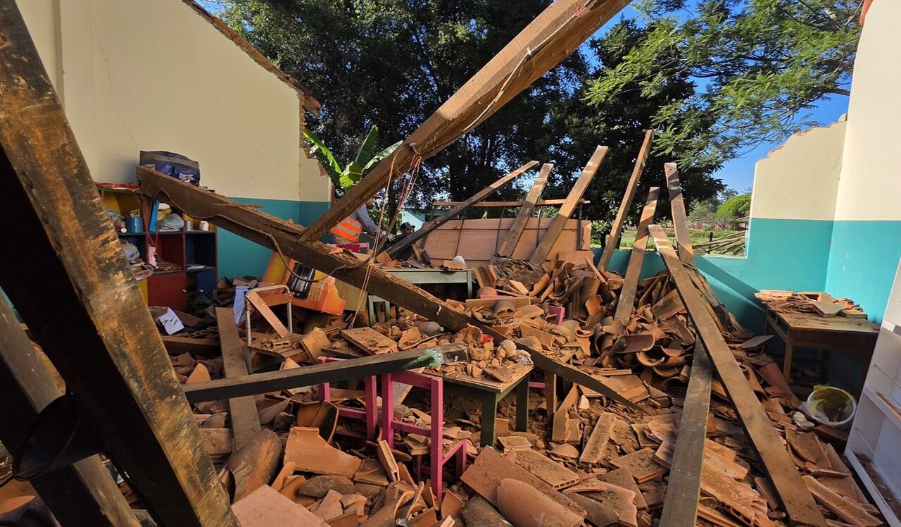 En la tarde de este miércoles se registró el colapso de parte de la estructura de la Escuela Básica N.º 1653 “María Auxiliadora”, ubicada en la comunidad 25 Tayao de Caaguazú, en el límite con el distrito de R.I. 3 Corrales.