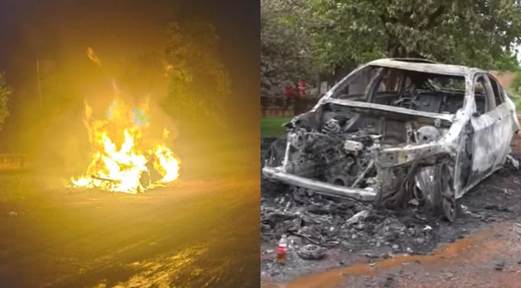 Este lunes en horas de la madrugada se registró un incendio de vehículo sobre la calle Jardín del Este, que une los Km 9 y 10 del lado Acaray de Ciudad del Este.
