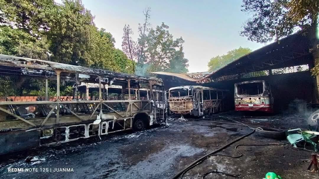 Un total de cinco ómnibus resultaron afectados por este incendio, quedando completamente reducidos a cenizas.