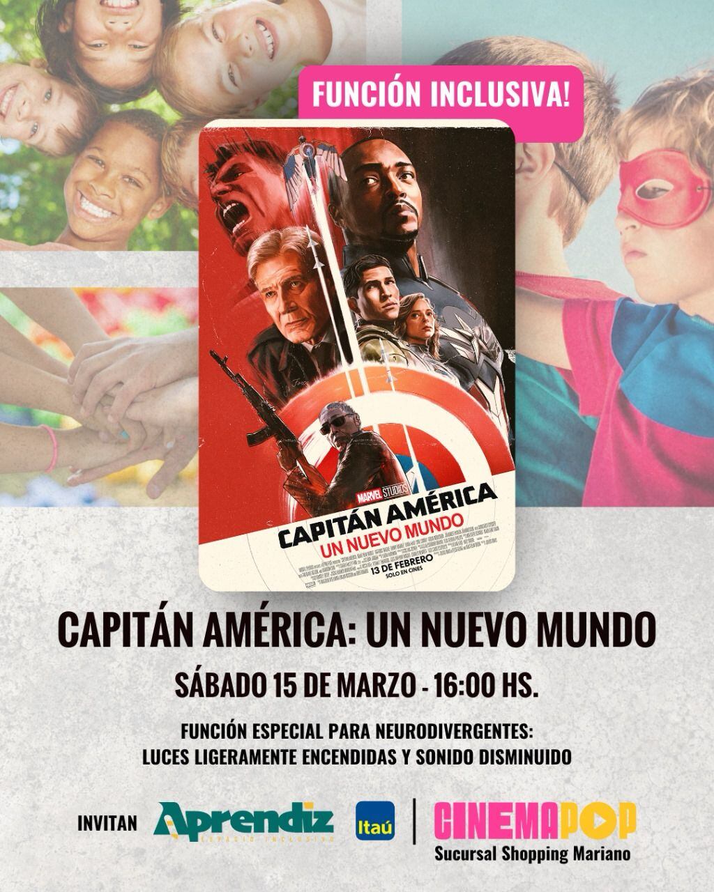 En un esfuerzo por hacer del cine una experiencia accesible para todos, el próximo sábado 15 de marzo se llevará a cabo una función especial de la esperada película “Capitán América: Un Nuevo Mundo”. La proyección tendrá características adaptadas para personas neurodivergentes, brindando un ambiente más cómodo y amigable.