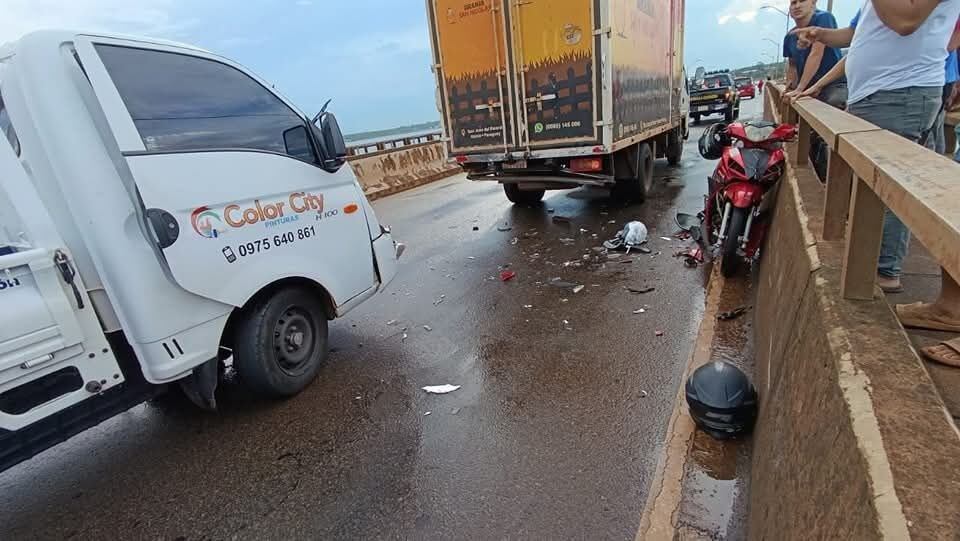 El pasado jueves se registró un accidente de tránsito con derivación fatal en el Puente Quiteria de Encarnación, el cual involucró a dos camiones y una motocicleta.