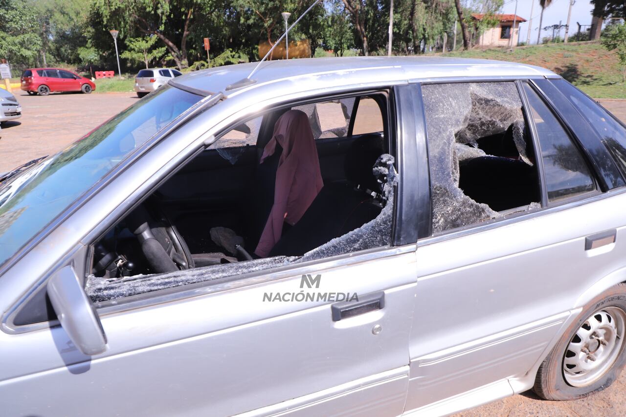 Un hecho de vandalismo tuvo lugar en el estacionamiento del Hospital de Clínicas, donde un motociclista destruyó el vehículo de una familia que había acudido al centro asistencial para la cirugía de su hijo.