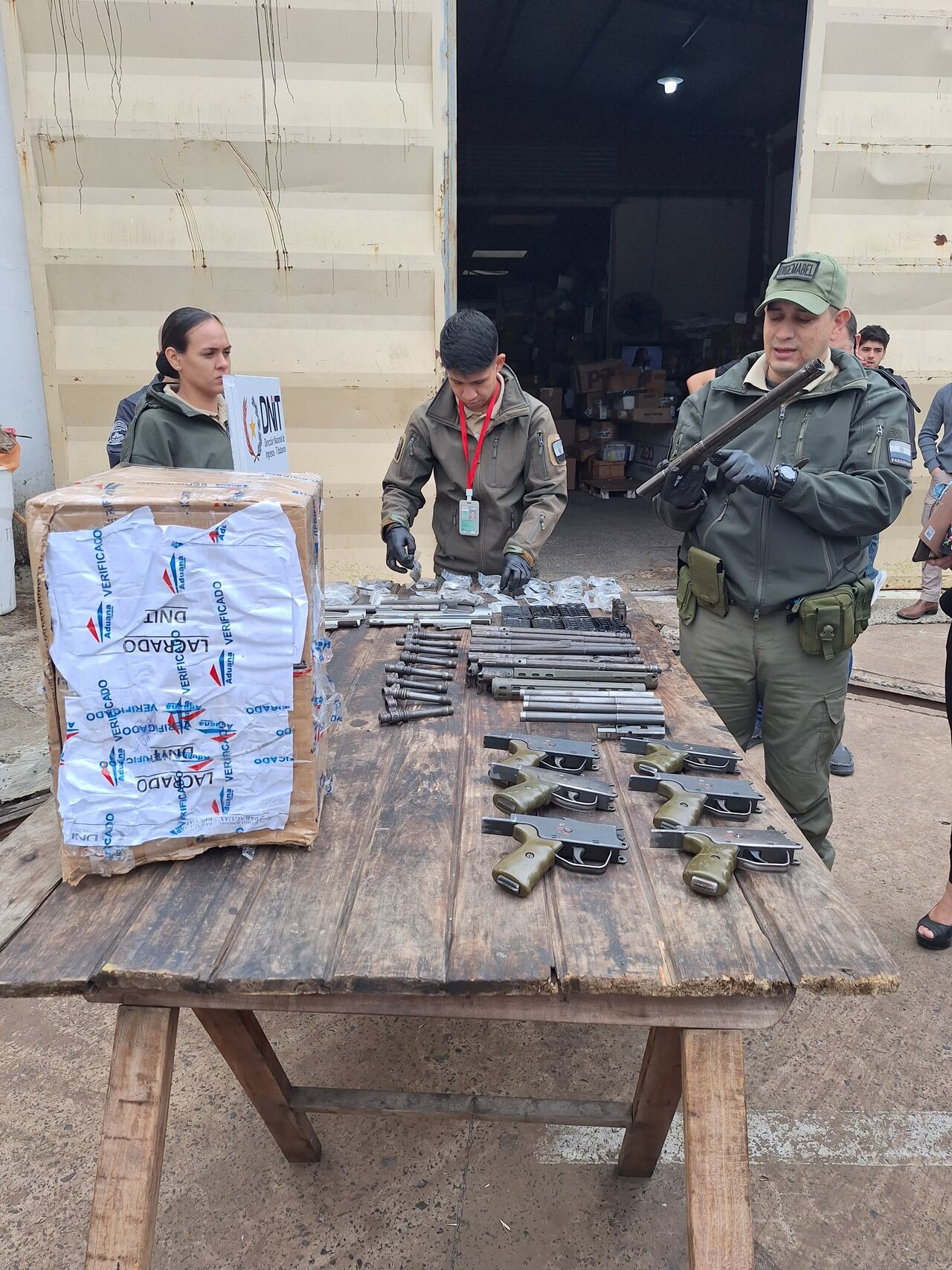 El agente fiscal José Martín Morinigo, de la Unidad n. º 11, Especializada en la Lucha contra el Narcotráfico y Crimen Organizado convocó a personal de la Dimabel, de Crimen Organizado de la Policía Nacional y demás funcionarios de la Dirección Nacional de Ingresos Tributarios (DNIT) para la verificación correspondiente del depósito Ticket de la Dinac, consistente en 6 cajones de armas de fuego correspondiente a fusil HK, modelo G3, además de accesorios controlados de armas de fuego como cargadores para fusil HK, calibre 7,62 X 51 mm., y conjunto de conversores del mismo calibre.