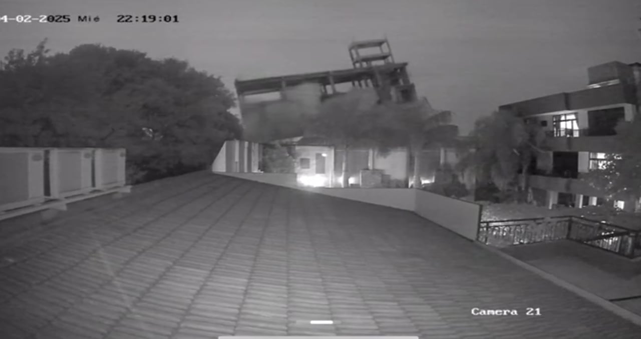 Alrededor de las 22:19, según horario de la cámara, el edificio en construcción, pero ya en una etapa avanzada, se desplomó repentinamente.