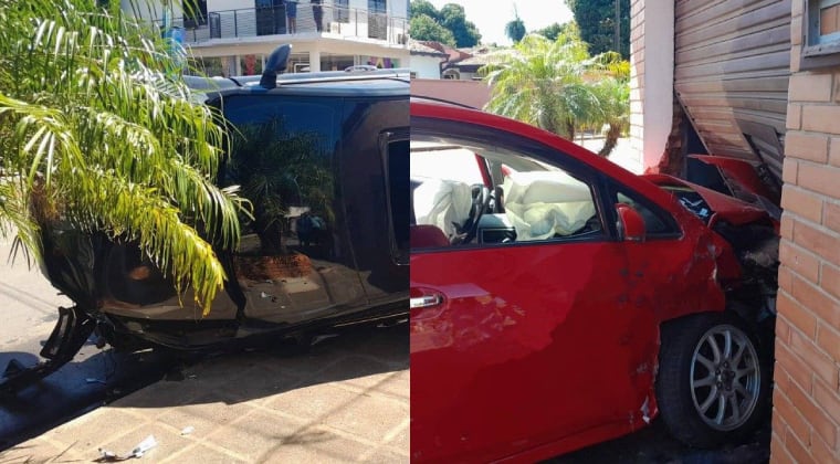 Un aparatoso accidente de tránsito involucró a un automóvil y una camioneta de alta gama en la ciudad de San Lorenzo. Uno de los vehículos involucrados acabó impactando contra un local comercial.