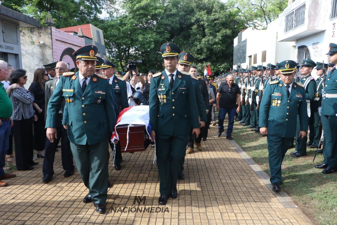 El militar, asesinado de varios disparos en la jornada de ayer, recibió una despedida con honores por parte de las Fuerzas Armadas, con acompañamiento de autoridades, familiares y allegados.