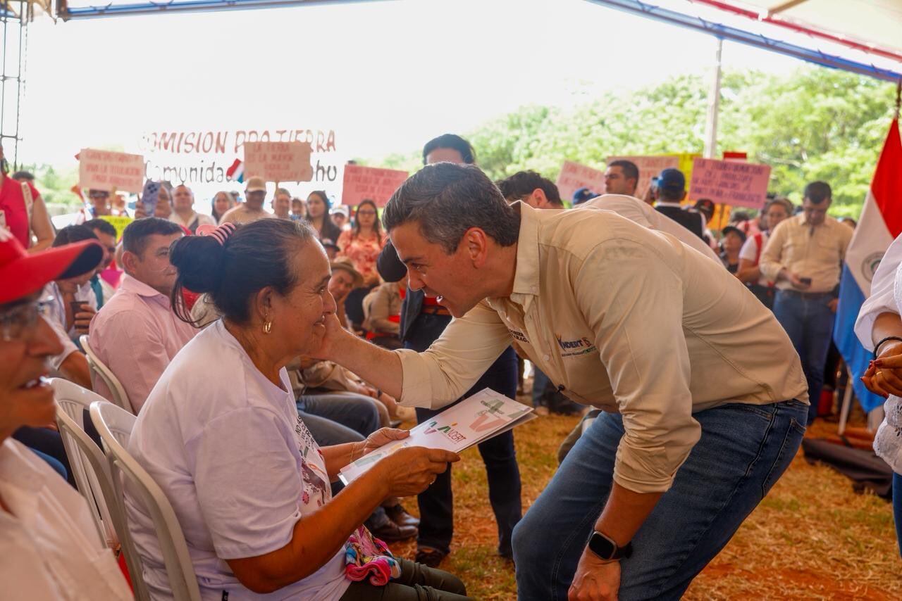 El presidente Santiago Peña estuvo este viernes en la Colonia Virgen del Camino, ciudad de Arroyito, Concepción, donde entregó 100 títulos de propiedad y habló de los medios que predican el discurso de odio. También dio un espaldarazo al presidente del Indert.
