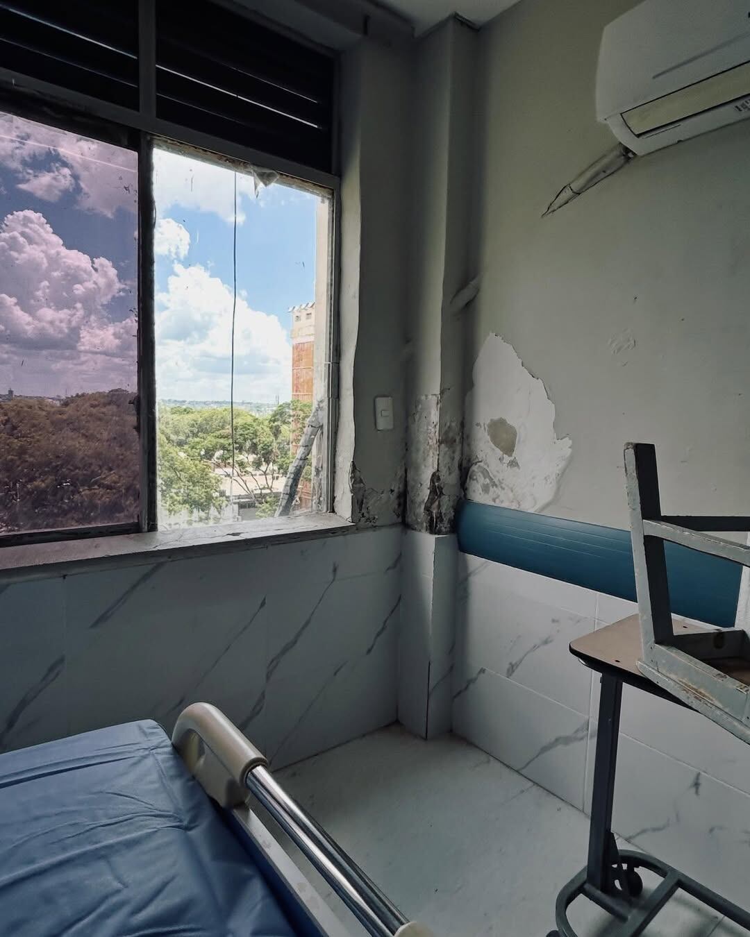 Hace años el IPS padece serios inconvenientes estructurales en el Hospital Central. Hoy la situación es casi terminal, ya que áreas enteras se encuentran prácticamente caídas, los baños inutilizables, laboratorios sin insumos, ascensores descompuestos y otras zonas que solamente pueden ser comparables con escenas de guerras.
