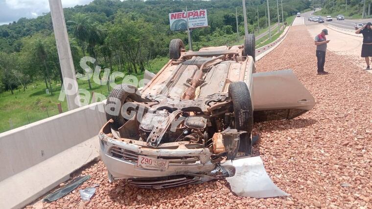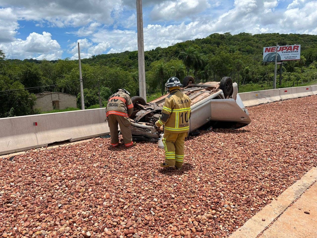 Una madre y su hija de 13 años sufrieron un aparatoso vuelco en la rampa de emergencia situada sobre la Ruta PY02, a la altura del Cerro Caacupé. Ambas víctimas sufrieron lesiones, aunque lograron sobrevivir.