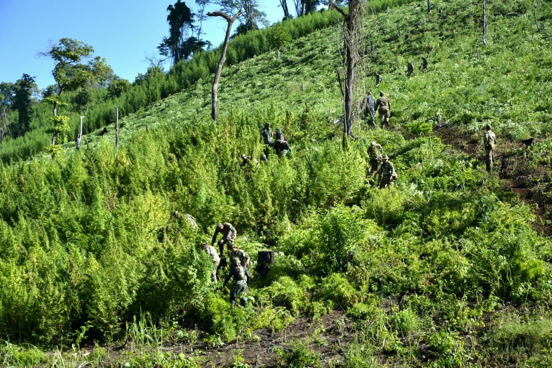 Los datos señalan que, en los últimos 10 días, se logró sacar de circulación más de 1.119 toneladas de marihuana, tras la localización y destrucción de cultivos ilícitos, además de campamentos destinados al acopio de cannabis.