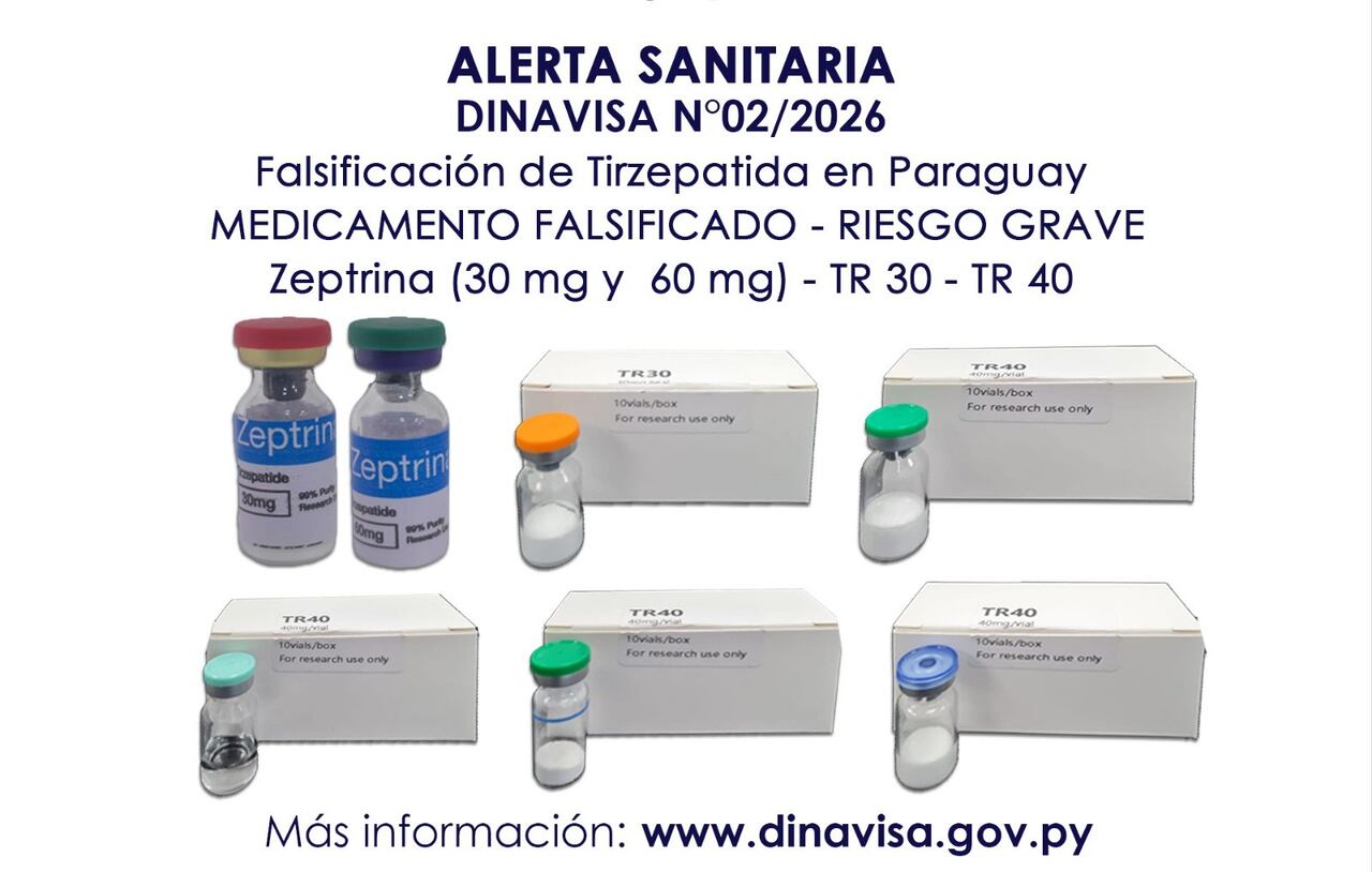 La Dirección Nacional de Vigilancia Sanitaria (Dinavisa) confirmó la detección de versiones falsificadas del principio activo Tirzepatida, las cuales estarían siendo comercializadas en el mercado nacional.