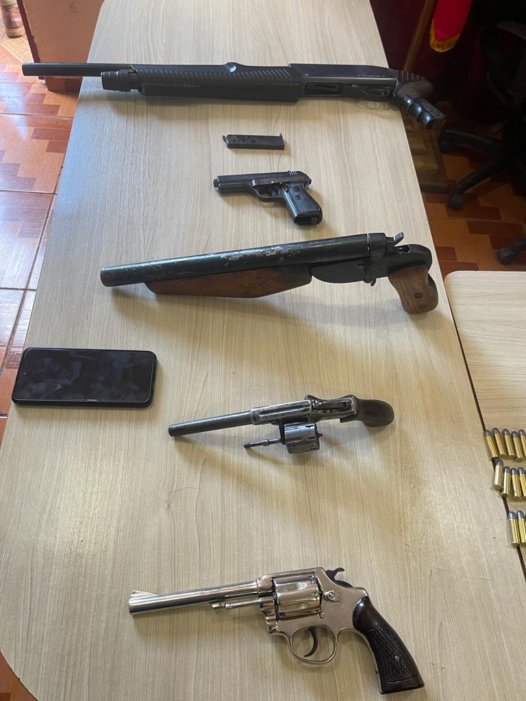 Asimismo, se incautaron cinco armas de fuego, gran cantidad de proyectiles y un vehículo.