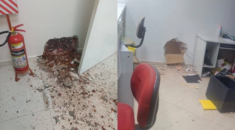 Una vez en el lugar, los intervinientes visualizaron dos orificios en el muro que divide ambas oficinas, uno en la parte trasera y otro al costado, menciona el informe.