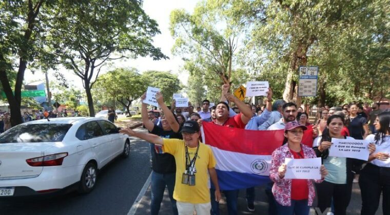 El motivo de la protesta fue para exigir el cumplimiento de la Ley 7012 que amplía el presupuesto para el Ministerio del Ambiente y establece la profundización de la matriz salarial.