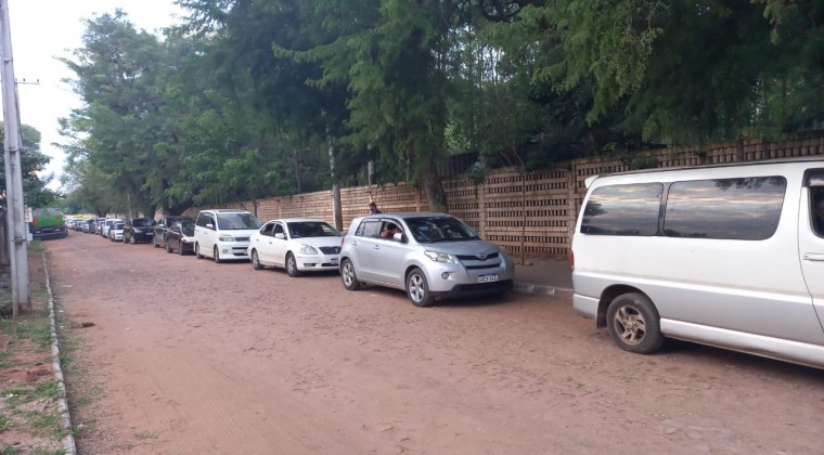 Desde las 05:00 de la mañana llegaron los primeros vehículos al Cerro Ñemby, donde se aplican las primeras dosis contra el coronavirus. La fila se extiende por unas tres cuadras.