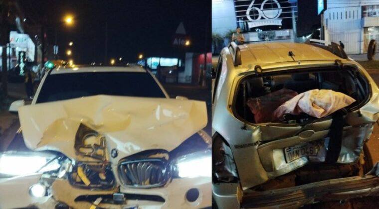El aparatoso choque ocurrió ayer en horas de la noche sobre la ruta PY07 de Ciudad del Este. El conductor de una lujosa camioneta de la marca BMW, modelo X5 XDRIVE 30D, blanco, chapa WOBN982, realizó una maniobra imprudente adelantándose por la banquina.