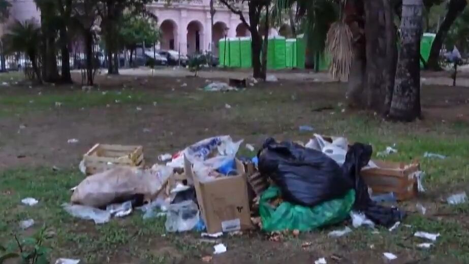 Enseñan, pero no dan el ejemplo: docentes dejaron un basural en la plaza
