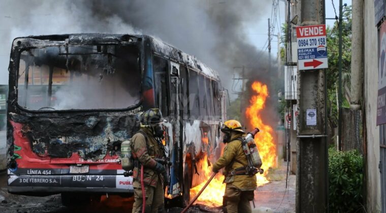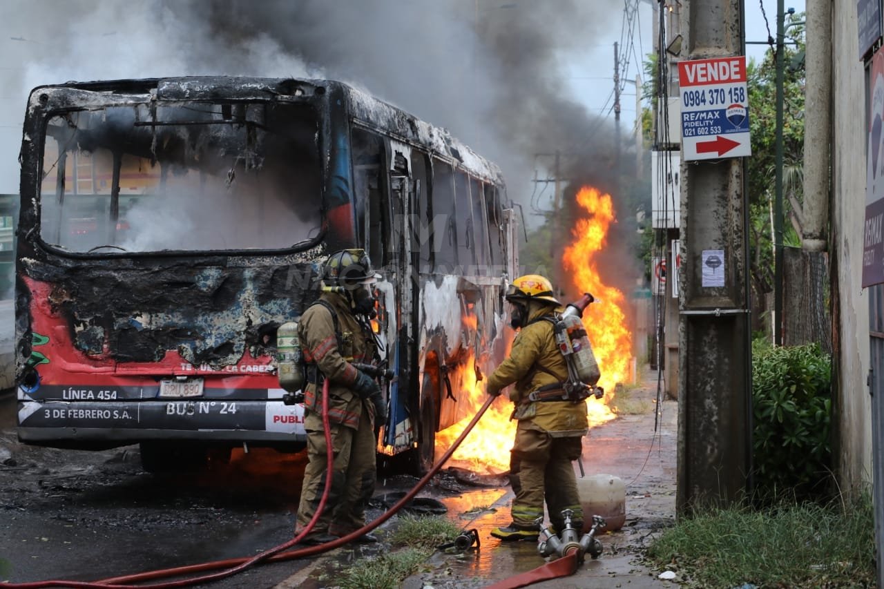Una unidad del transporte público ardió en llamas este jueves en la zona del viaducto de 4 Mojones en Asunción.