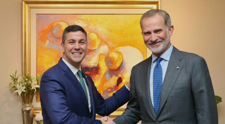 “Hablamos de las relaciones bilaterales entre nuestros países, de la cooperación y de los vínculos históricos y culturales que nos unen”, mencionó Santiago Peña, acerca del encuentro con el Rey de España, Felipe de Borbón.