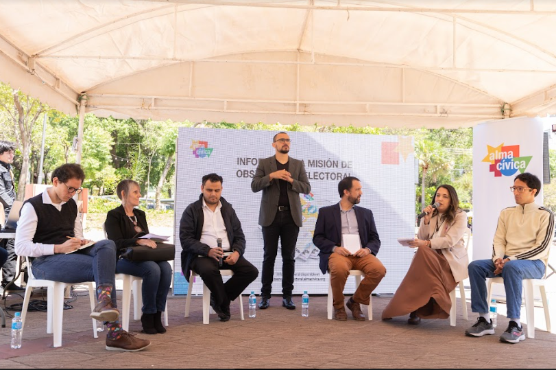 El conversatorio fue liderado por Olga Caballero, directora ejecutiva de Alma Cívica, Dania Pilz, de la organización Decidamos; Ricardo Zelada, voluntario observador; Ariel Ruíz Díaz, referente de las personas con discapacidad visual; Eduardo Carrillo de TEDIC Tecnología y Comunidad; y Camilo Filártiga del Instituto Internacional para la Democracia y la Asistencia Electoral (IDEA Internacional).