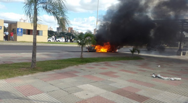 Ahora se incendió un vehiculo en la Costanera de Asuncion. El conductor tenía combustible en la parte trasera del rodado #LourdesMartinez pic.twitter.com/3rkPu2zAO4