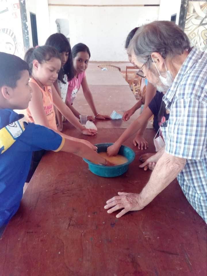 Antonio junto a alumnas y alumnos en el Espacio Expresión. Foto: Gentileza